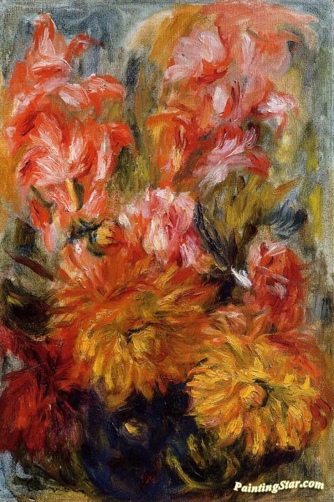 Gladiolas in a Blue Vase, Art Painting by Pierre Auguste Renoir