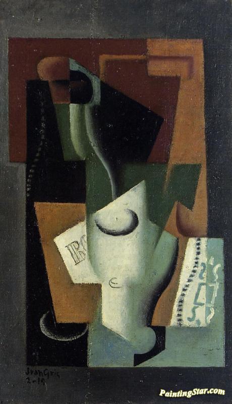 Glass And Bottle, Art Painting by Juan Gris