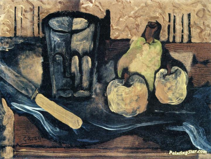 Glass, Fruit and Knife, Art Painting by Georges Braque