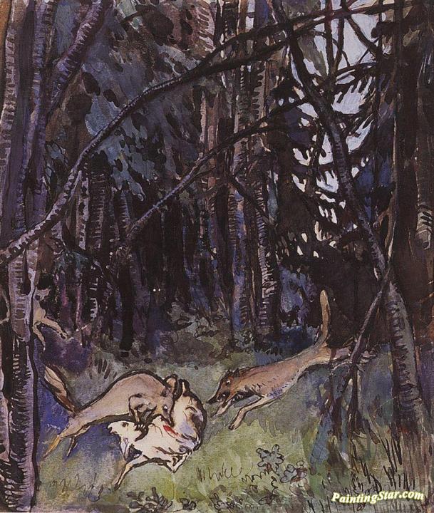 Goat Attacked by Gray Wolves, Art Painting by Zinaida Serebriakova