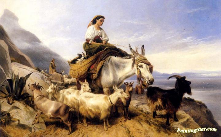 Goatherds, Gibraltar Looking Across The Strait Into Africa, Art Painting by Richard Ansdell