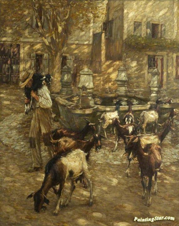 Goats at a Fountain, Art Painting by Henry la Thangue