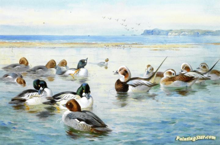 Goldeneyes and Longtails, Art Painting by Archibald Thorburn