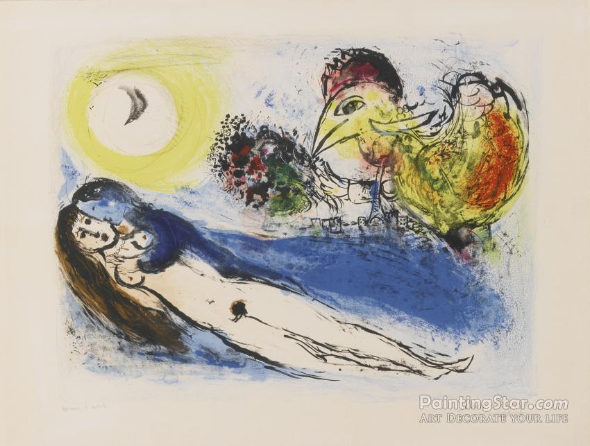 Good Morning Over Paris, Art Painting by Marc Chagall