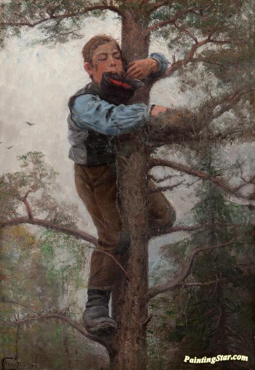 Gosse I Träd Som Stjäl ägg, Art Painting by Johan Tiren