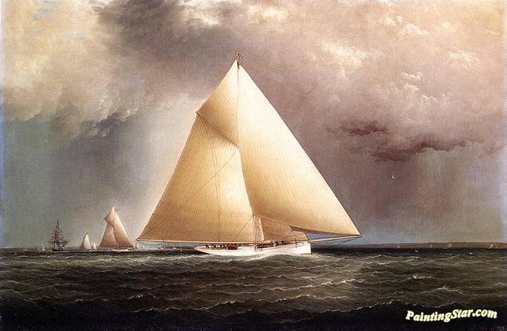'Gracie', 'Vision' and 'Cornelia' rounding Sandy Hook in the New York Yacht Club Regatta of June 11, 1874, Art Painting by James E. Buttersworth