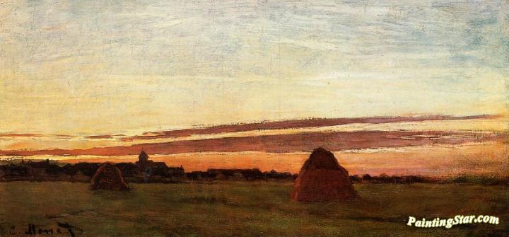Grainstacks at Chailly at Sunrise, Art Painting by Claude Oscar Monet