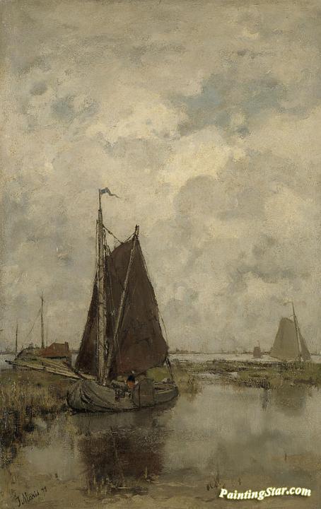 Gray day with ships, Art Painting by Jacob Maris