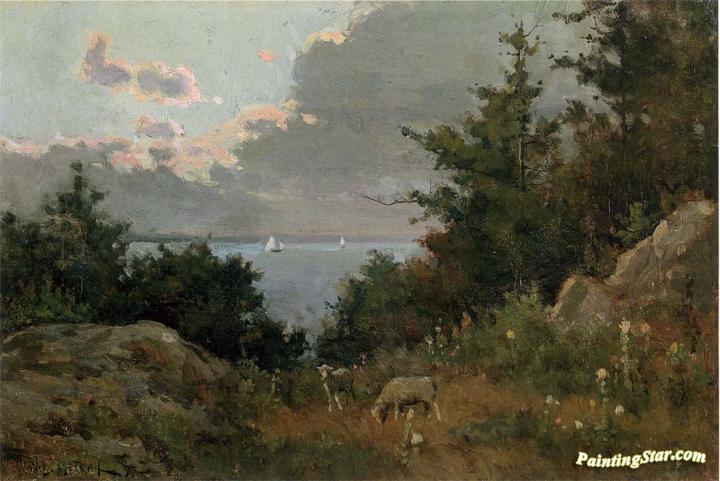 Grazing sheep on the coast of Maine, Art Painting by Willard Leroy Metcalf