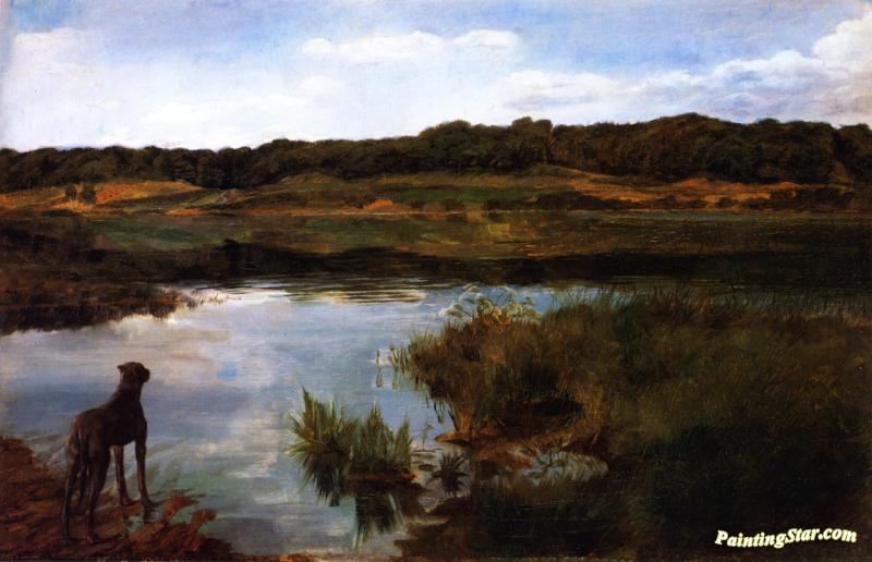 Great Dane On Wessling Lake, Art Painting by Wilhelm Trübner