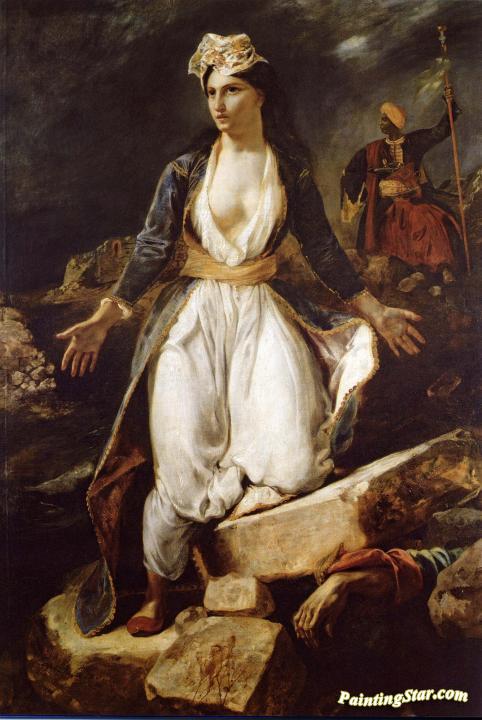 Greece on the Ruins of Missolonghi, Art Painting by Eugène Delacroix