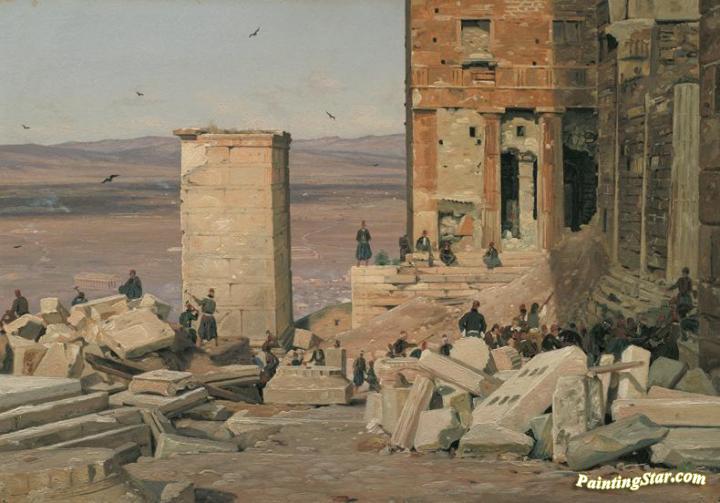 Greeks Working in the Ruins of the Acropolis (Grækere arbejder i ruinerne ved Akropolis), Art Painting by Martinus Rorbye