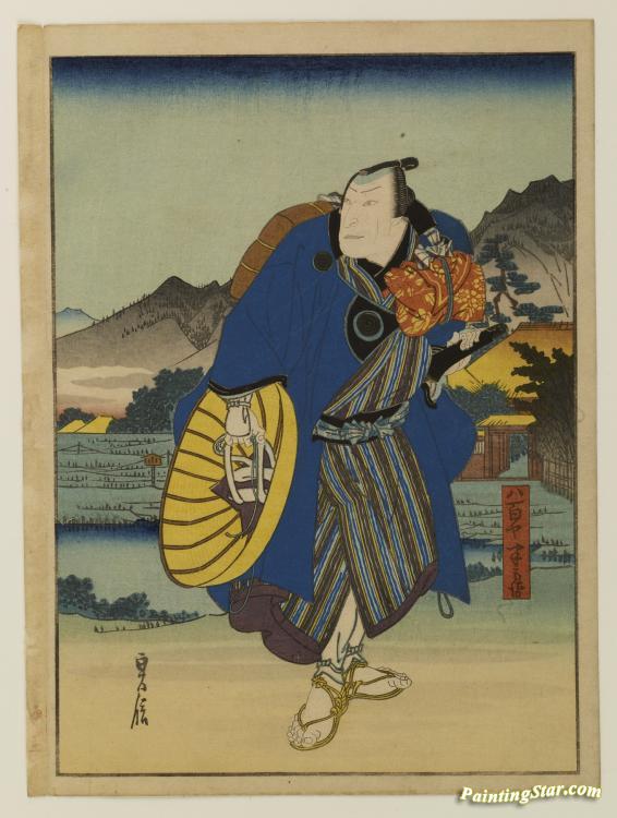 Green Grocer Hanbei Traveling In The Country,1850, Art Painting by Sadanobu I