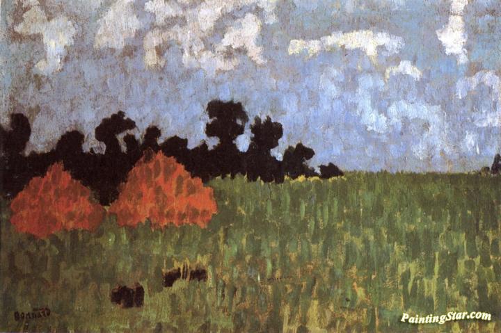 Green Lawn with Two Haystacks, Art Painting by Pierre Bonnard