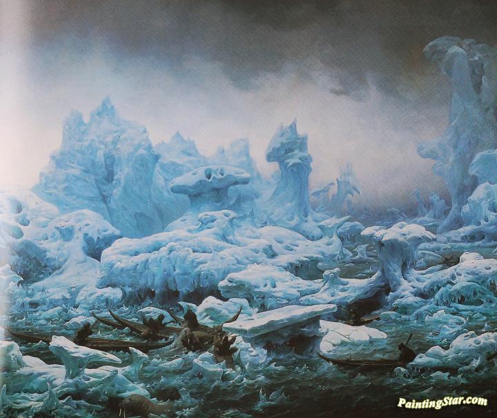 Greenlander Chasing Walrusses In The Arctic Sea, Art Painting by Francois-Auguste Biard