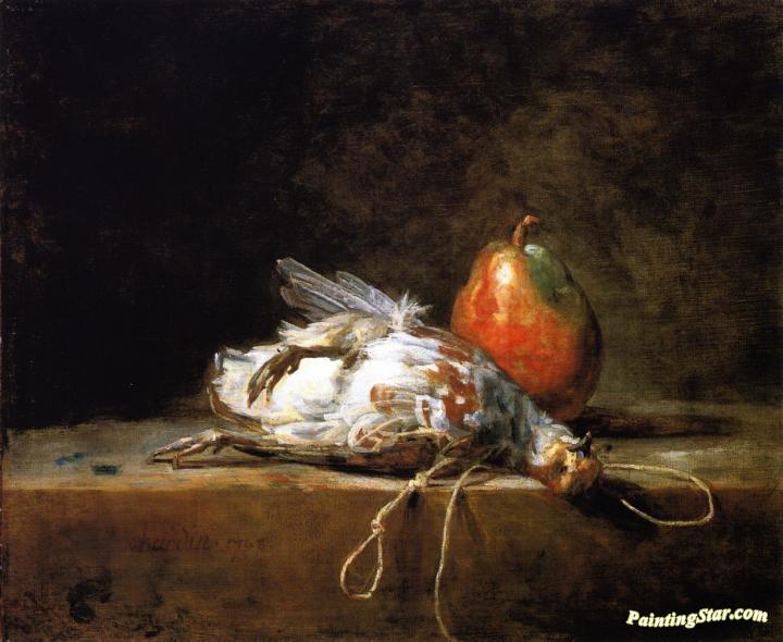 Grey Partridge, Pear and Snare on a Stone Table, Art Painting by Jean-Baptiste-Simeon Chardin