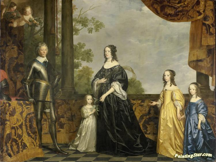 Group Portait Of Frederick Henry,prince Of Orange(1584-1647),amalia Of Solms-braunfels(1602-1675) And Their Three Youngest Daughters(c.1647), Art Painting by Gerard van Honthorst