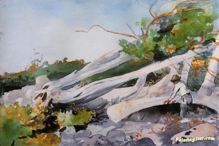 Guide Hiding a Canoe, Art Painting by Winslow Homer