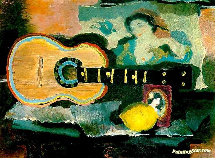 Guitar with Painting, Art Painting by Vladimir Lebedev