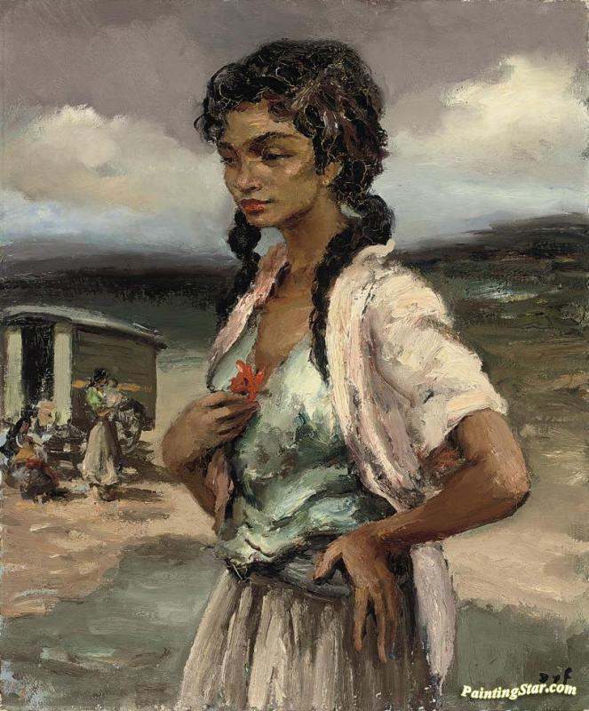 Gypsy With A Flower, Art Painting by Marcel Dyf
