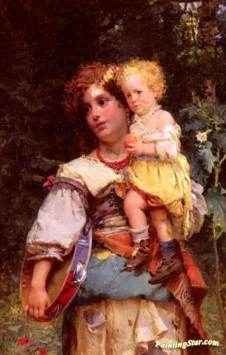 Gypsy Woman and Child, Art Painting by Cesare Auguste Detti