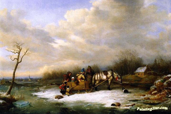 Habitant Family with Horse and Sleigh, Art Painting by Cornelius Krieghoff