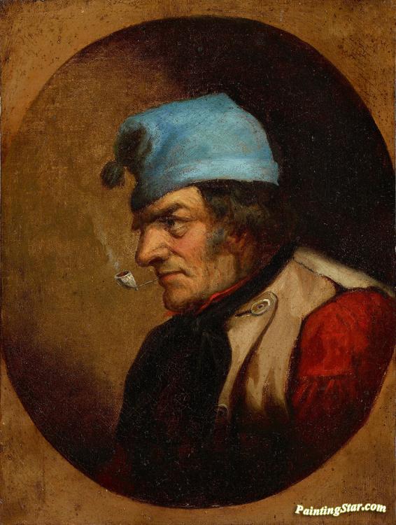 Habitant with Blue Tuque and Pipe, Art Painting by Cornelius Krieghoff