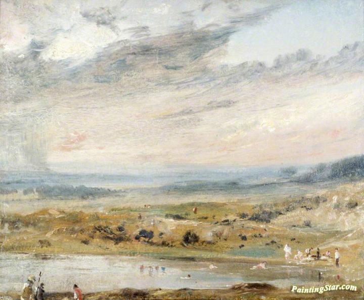 Hampstead Heath With Pond And Bathers, Art Painting by John Constable