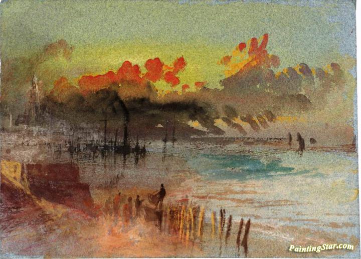 Harbour Scene at Sunrise, possibly Margate, Art Painting by Joseph Mallord William Turner