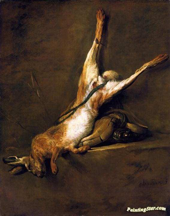 Hare with Powder Flask and Game Bag, Art Painting by Jean-Baptiste-Simeon Chardin