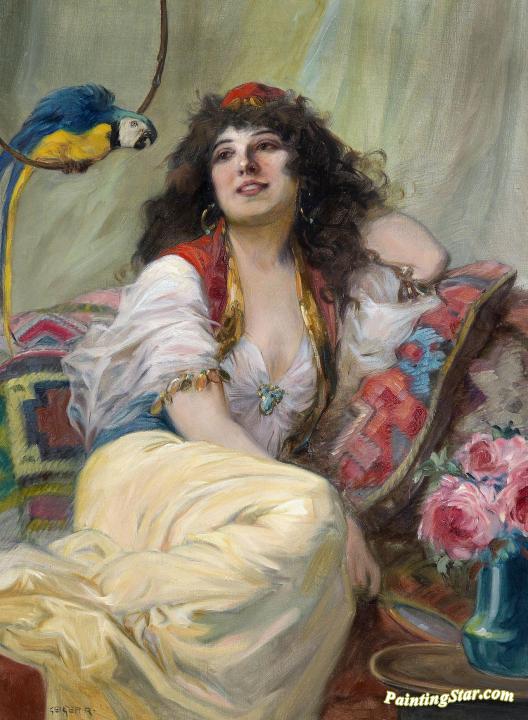 Harem Girl with Parrot, Art Painting by Richard Geiger