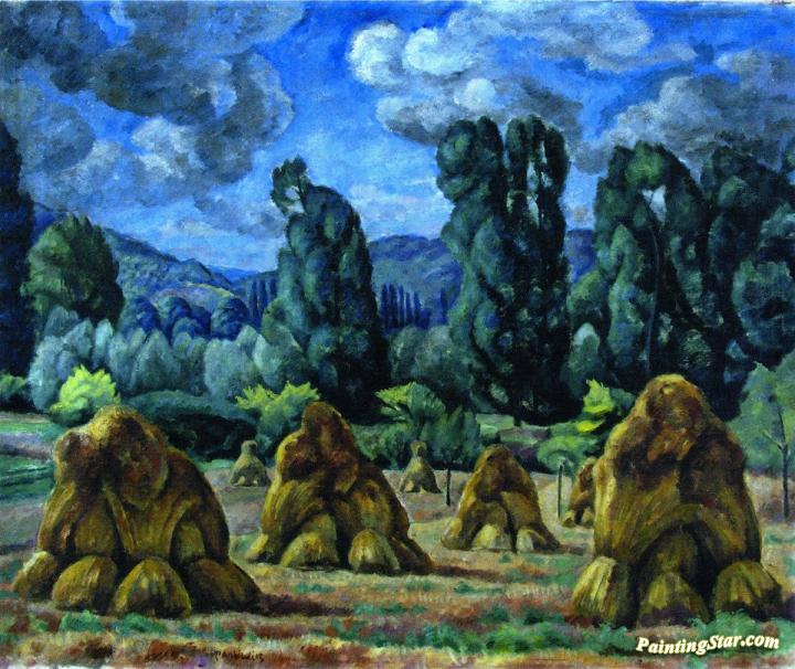 Haystacks - Normandy Landscape, Art Painting by Jozef Pankiewicz