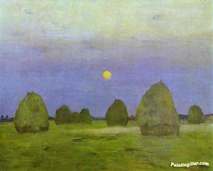 Haystacks. Twilight, Art Painting by Isaac Ilich Levitan