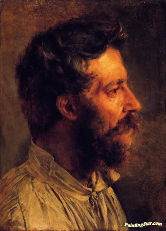 Head Of A Bearded Workman In Profile, Art Painting by Adolph von Menzel