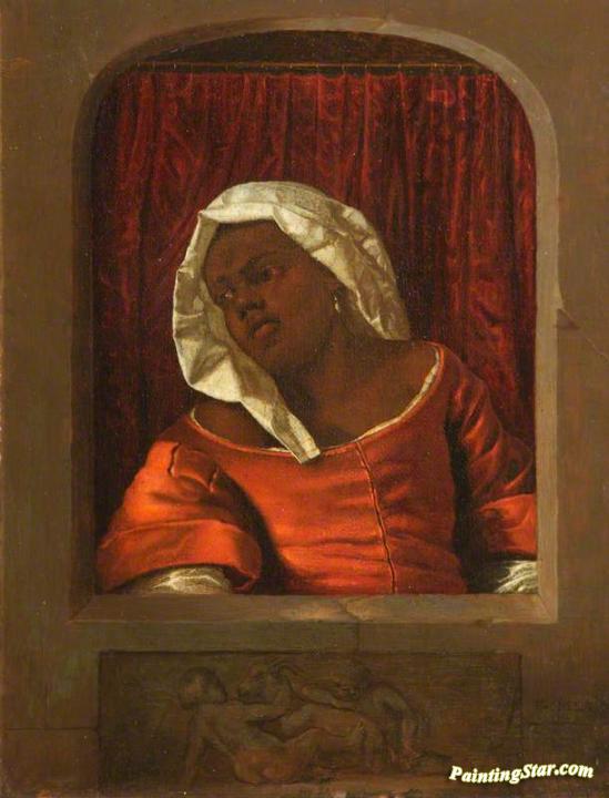 Head of a Negress in a Simulated Opening, Art Painting by Gabriel Metsu