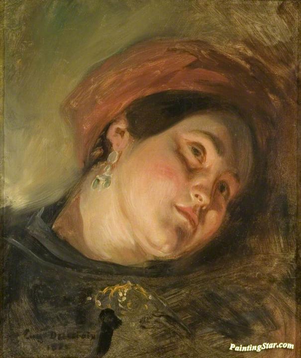 Head of a Woman in a Red Turban, Art Painting by Eugène Delacroix