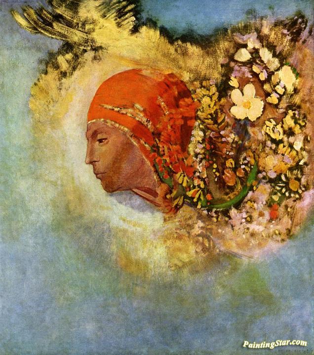 Head with Flowers, Art Painting by Odilon Redon