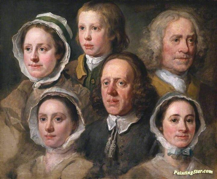 Heads of Six of Hogarth's Servants, Art Painting by William Hogarth