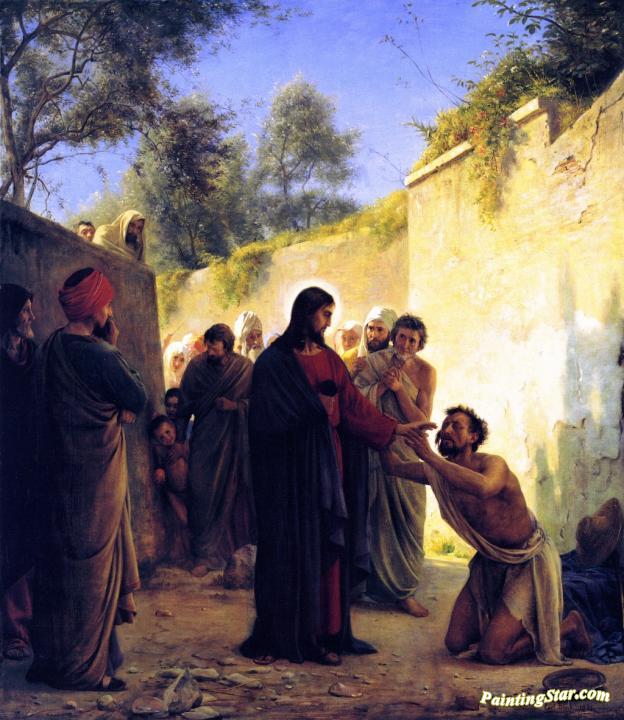 Healing of the Blind Man, Art Painting by Carl Heinrich Bloch
