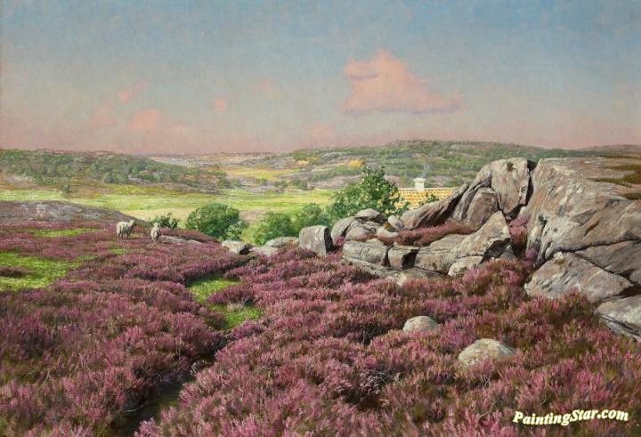 Heather-clad cliffs with sheep, Art Painting by Johan Krouthén