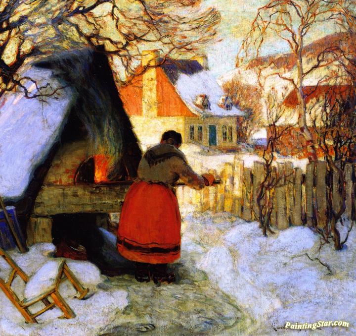 Heating The Oven, Winter Scene, Art Painting by Clarence Gagnon
