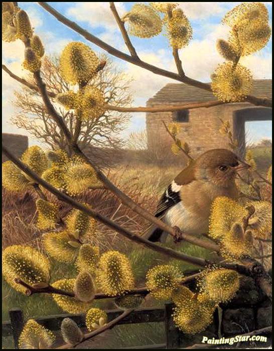 Hen Chaffinche with Willow Catkins, Art Painting by Raymond Booth