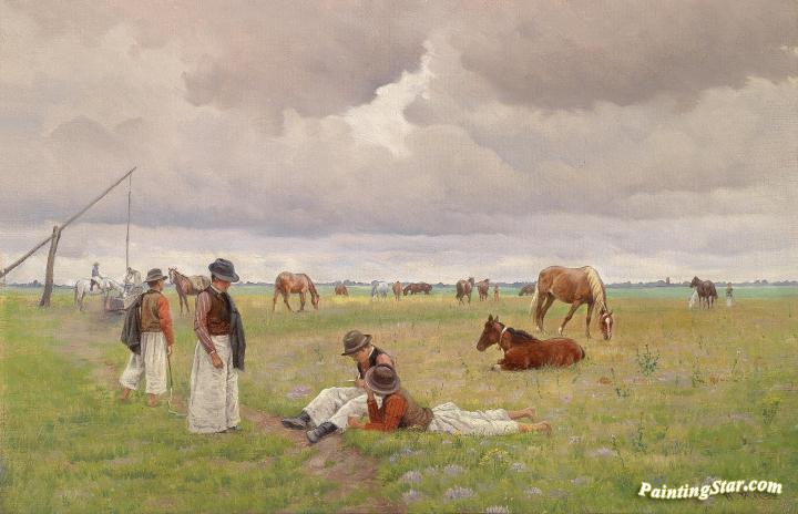Hermann Reisz Junge Hirten in der Puszta, Art Painting by Hermann Reisz