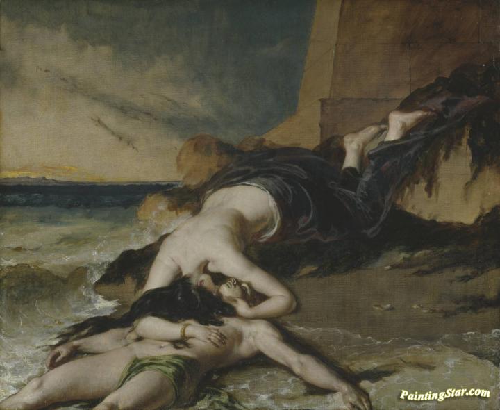 Hero, Having Thrown Herself From The Tower At The Sight Of Leander Drowned, Dies On His Body, Art Painting by William Etty