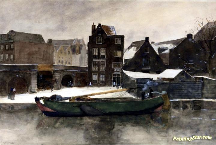 Het Prinseneiland: the Teertuinen in winter, Amsterdam, Art Painting by George Heidrik Breitner