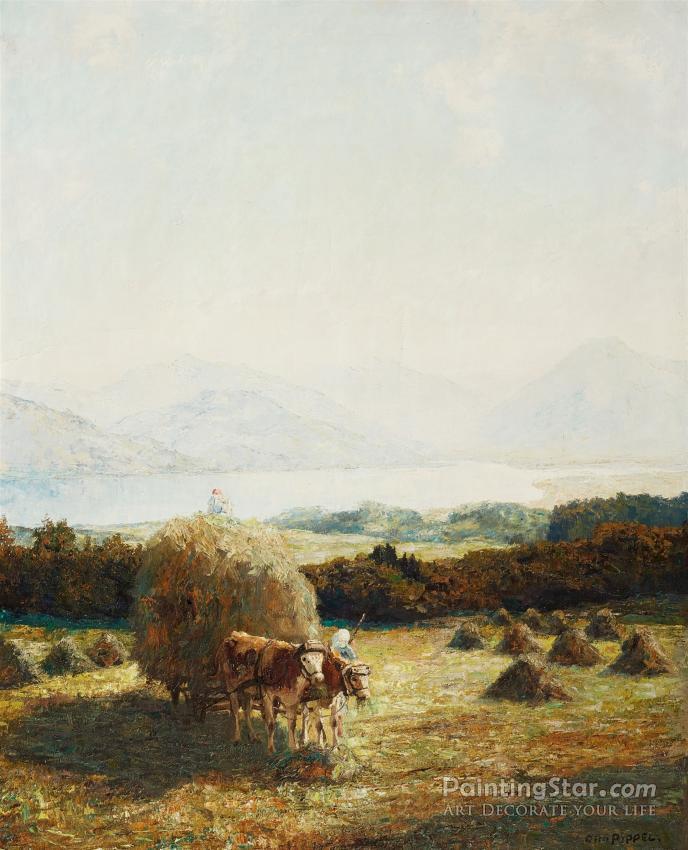 Heuernte Am Tegernsee, Art Painting by Otto Pippel
