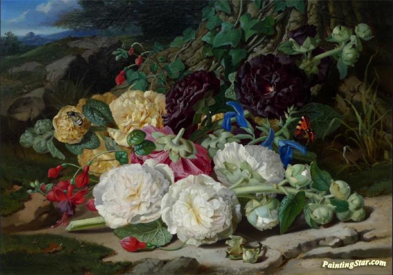 Hollyhocks And Ivy, Art Painting by John Wainwright