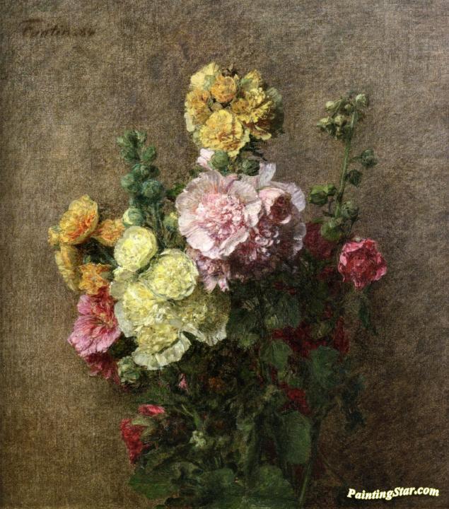 Hollyhocks without Vase, Art Painting by Henri Fantin-Latour