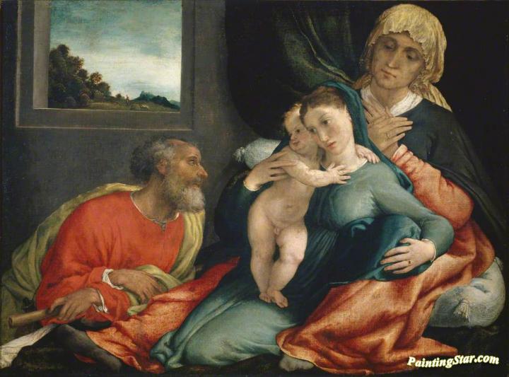 Holy Family with Saints Anne and Joachim, Art Painting by Lorenzo Lotto