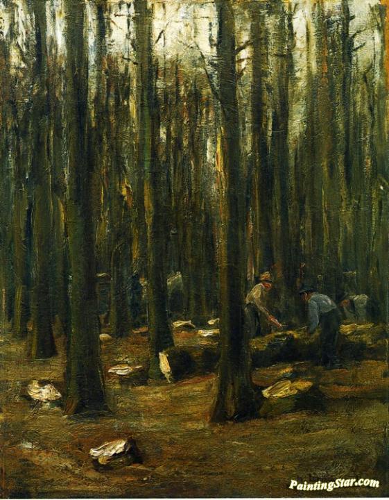 Holzhacker im Inneren eines Waldes, Art Painting by Max Liebermann